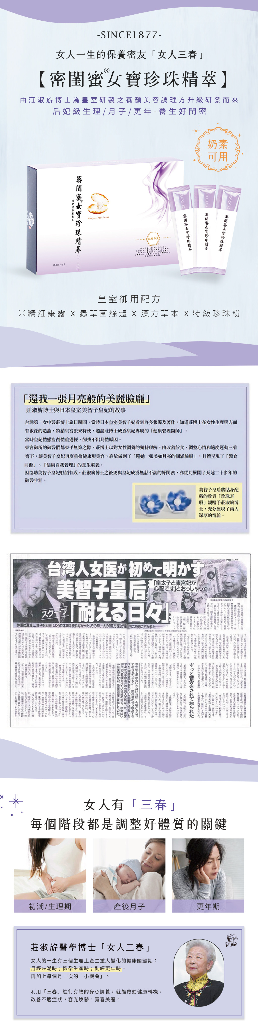 由莊淑旂博士為日本皇室研製之養顏美容調理方,升級研發而來