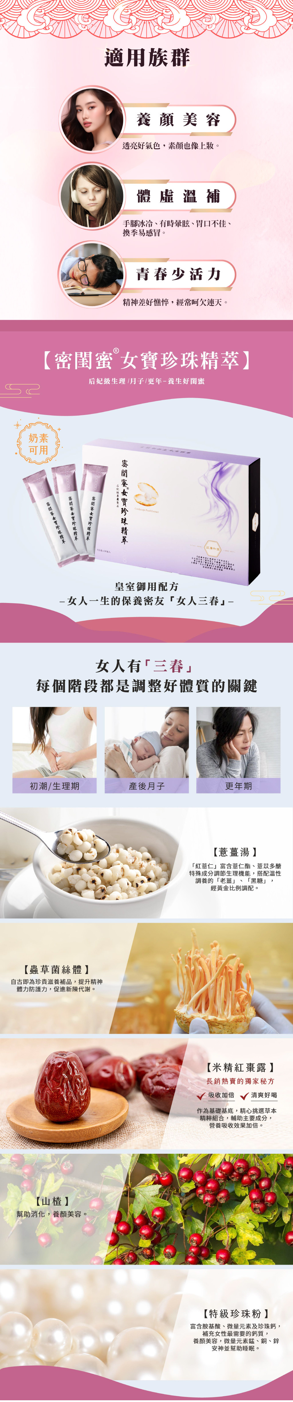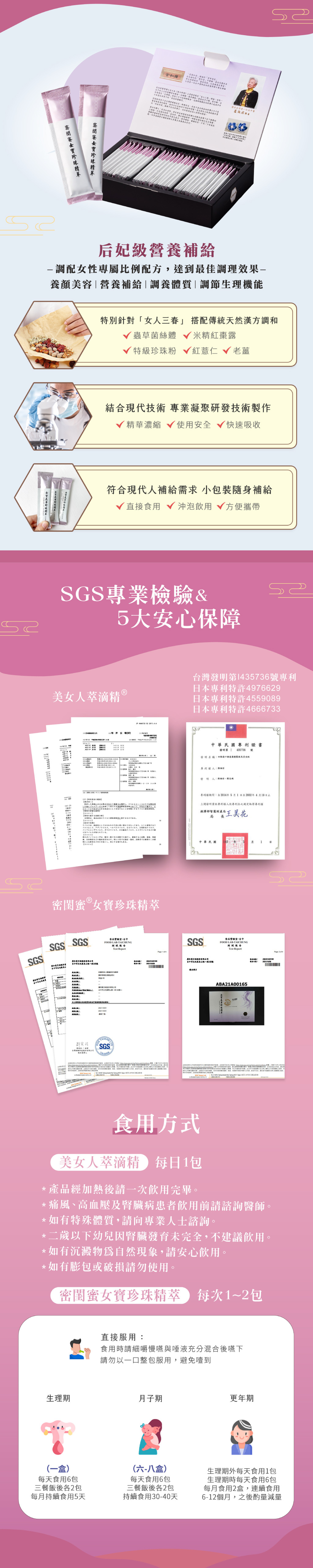后妃級專屬聖品-傳承自莊淑旂中西醫學博士的養生智慧,由莊淑旂博士為日本皇室研製之養顏美容調理方,升級研發而來。
