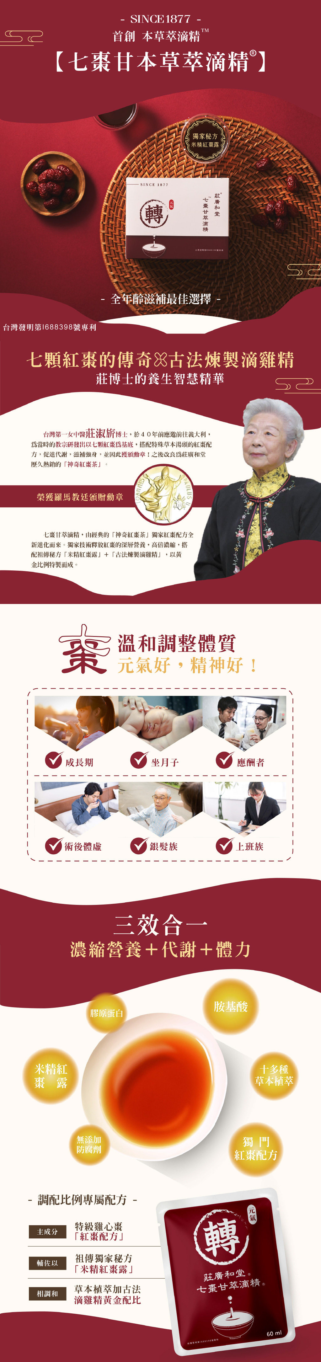 ✨由台灣首位中醫莊淑旂博士研發出獲頒勳章的經典「將神奇紅棗茶精華8倍濃縮x古法煉製滴雞精」升級而來