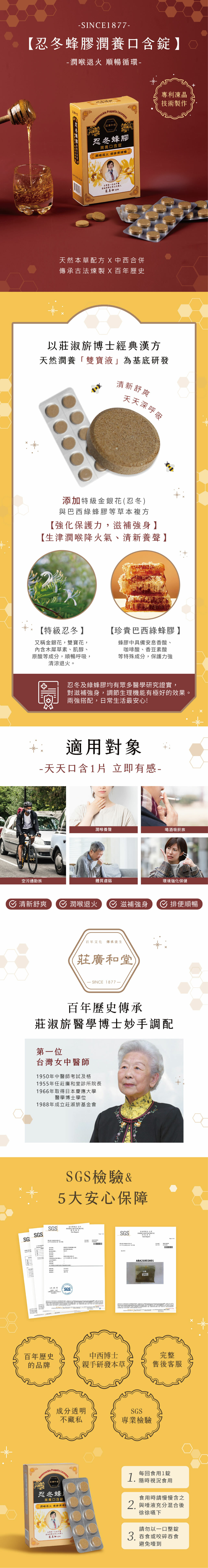 莊廣和堂 忍冬蜂膠潤養口含錠