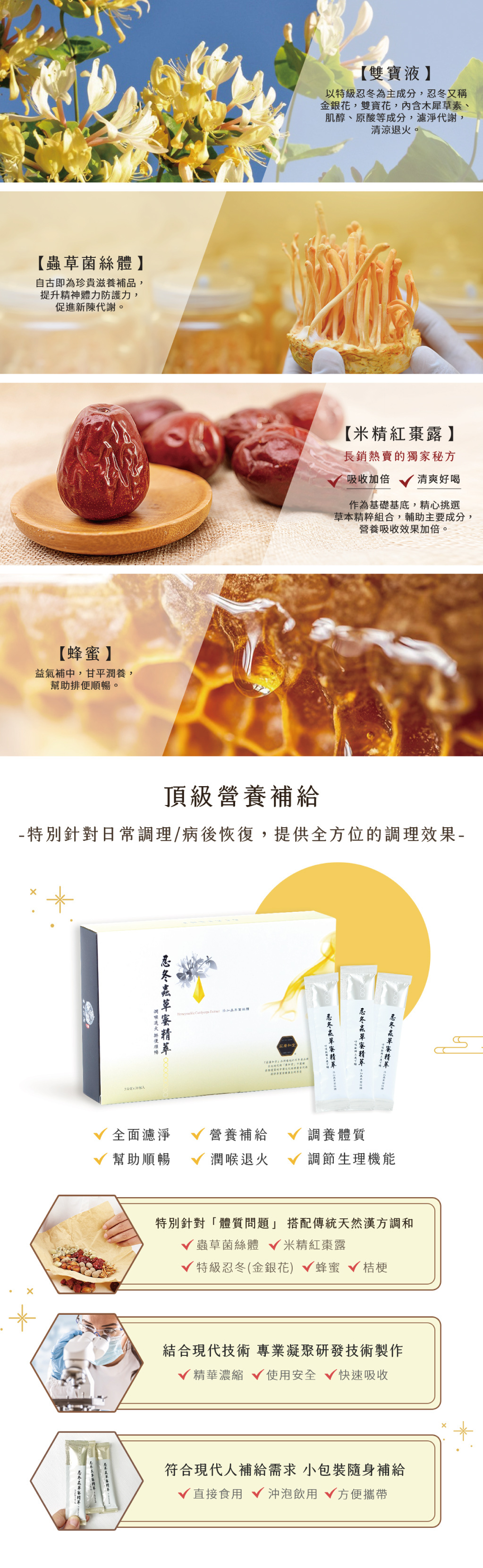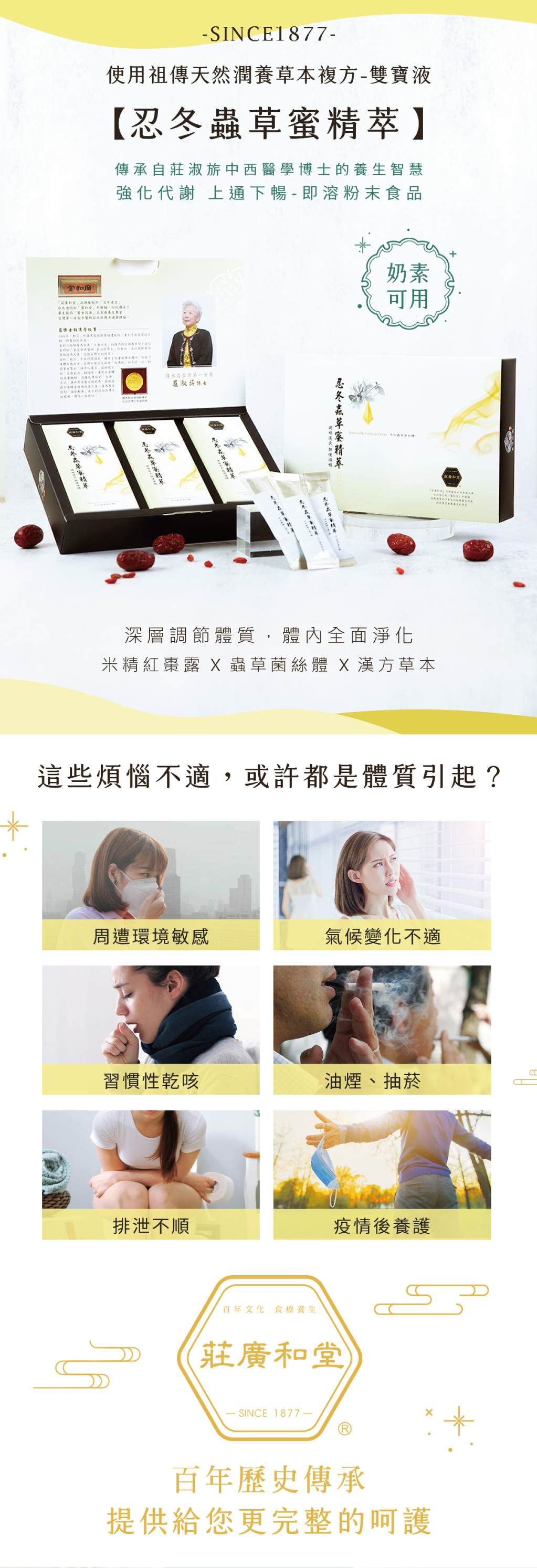 莊廣和堂-忍冬蟲草蜜精萃-台灣第一位女中西醫學莊淑旂博士畢生研究精華。