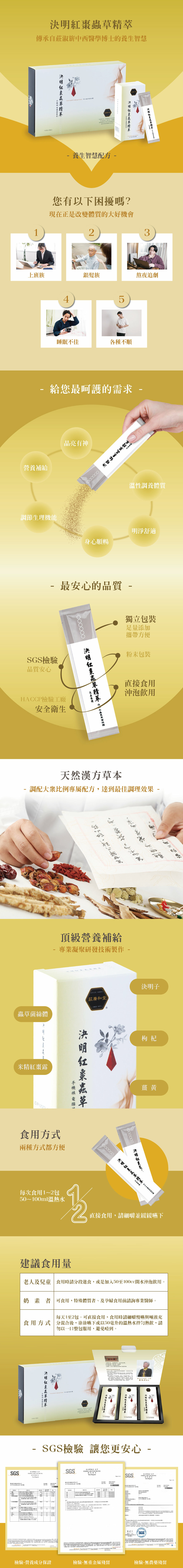 添加決明子及蟲草菌絲體、結合現代萃取濃縮技術,將決明紅棗蟲草茶精華濃縮成即溶粉末食品隨身包,科技、方便、美味、營養。