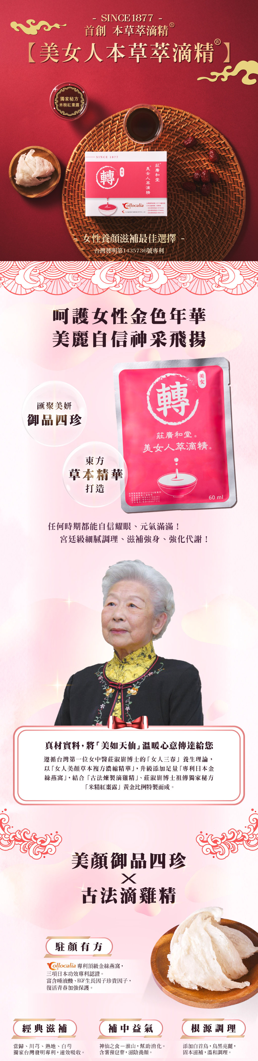 🔥女人草本+日本專利金絲燕窩+純煉滴雞精,熟齡女拾遺瑰寶-女人美顏極品